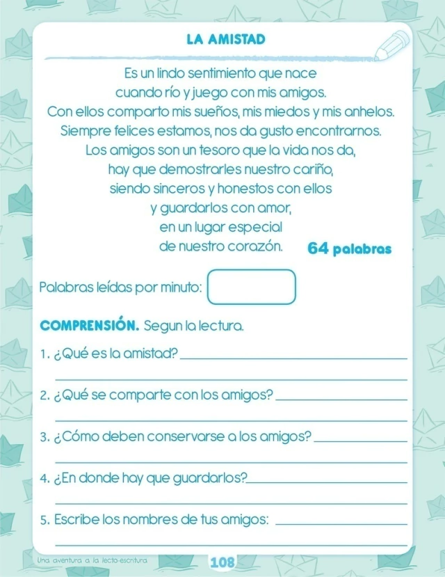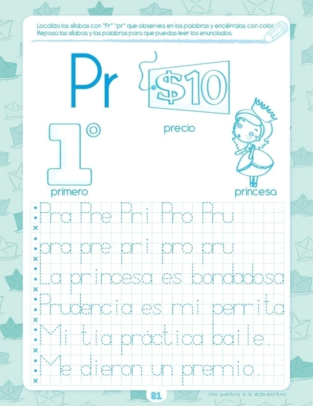 Es un Cuaderno de Apoyo y Fortalecimiento donde el alumno podrá conocer y reforzar de manera amena y dinámica las letras e introducirse paulatinamente a la escritura y la lectura ya que incluye una sección donde podrá ejercitarla, asentar las palabras leídas por minuto y comprobar su comprensión resolviendo los cuestionarios correspondientes además que se divertirá coloreando las imágenes alusivas de cada una.