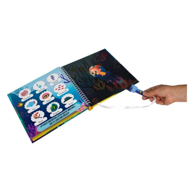 "Alumbra y descubre: bajo el agua" es un maravilloso libro infantil que sumerge a los pequeños lectores en las profundidades del océano, donde la vida marina cobra vida de manera mágica, Diseñado para ser leído en voz alta y explorado en familia, este libro es ideal para niños mayores de 3 años, Equipado con una linterna mágica, los niños podrán iluminar las páginas submarinas y descubrir un mundo asombroso lleno de peces de colores brillantes, plantas acuáticas ondulantes y misteriosos moluscos, Cada página es una aventura, invitando a los niños a encontrar todo lo que se oculta en el vasto océano, Este libro no solo ofrece diversión, sino que también fomenta la curiosidad y el amor por la naturaleza, enseñando a los pequeños sobre las maravillas del mundo acuático, ¡Una experiencia educativa e interactiva que hará que los niños quieran explorar el fondo del mar una y otra vez!