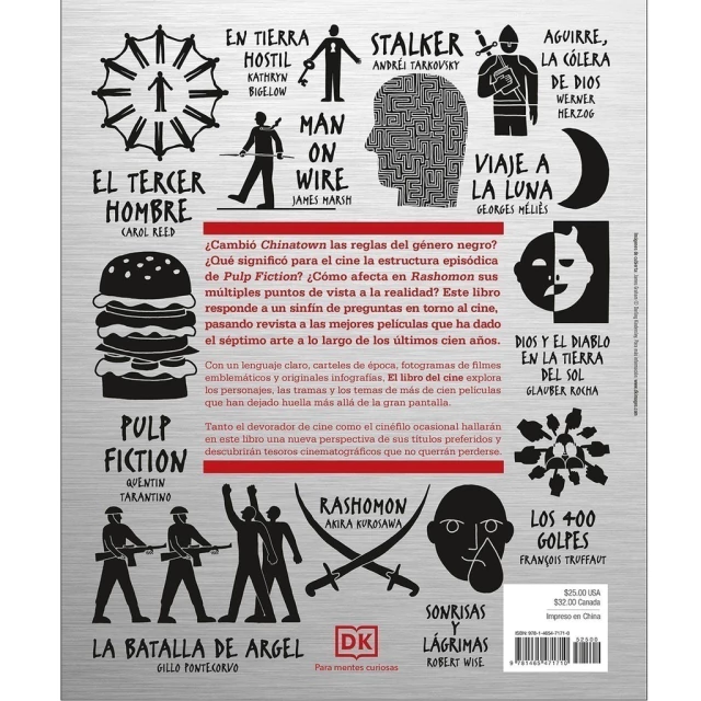 Citas inolvidables, imágenes de películas y carteles originales te transportan al mundo de cada película en The Movie Book, mientras que las líneas de tiempo narrativas y las infografías exploran temas centrales, personajes, actores y directores. Revive clásicos de la era del cine mudo, como Nosferatu, junto con grandes películas de la guerra como Casablanca, filmes transformadores de la Nueva Ola como Lawrence de Arabia y Easy Rider, y obras maestras modernas como Do the Right Thing, Ciudad de Dios y Gravity. Cada película se coloca en el contexto más amplio de la industria y sus figuras clave, lo que hace que este libro sea un recurso invaluable para cualquier fanático del cine.