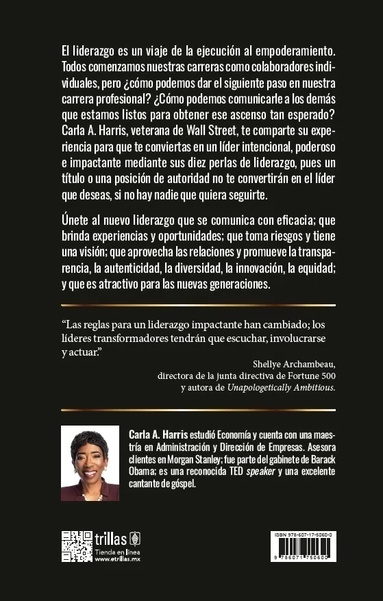 Carla A. Harris, veterana de Wall Street, te comparte su experiencia para que te conviertas en un líder intencional, poderoso e impactante mediante sus diez perlas de liderazgo, pues un