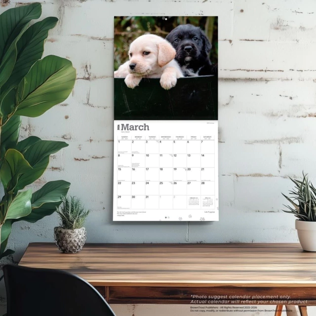 Cachorros Labrador Retriever Calendario de pared mensual cuadrado colgante 2026 de 30.5 x 61 cm Libre de plástico