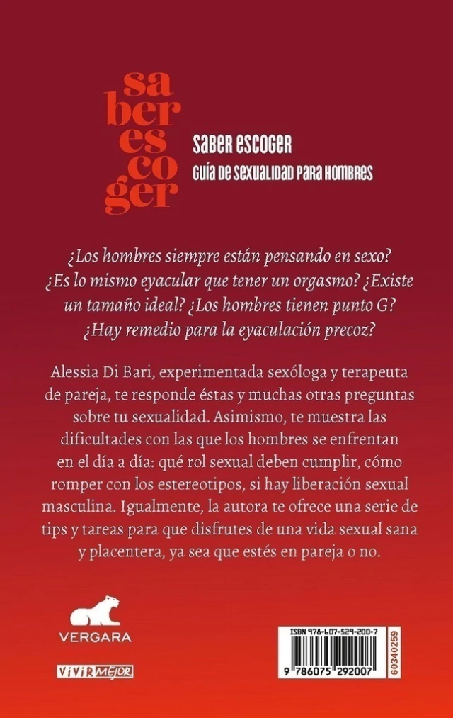 Alessia Di Bari, experimentada sexóloga y terapeuta de pareja, te responde éstas y muchas otras preguntas sobre tu sexualidad. Asimismo, te muestra las dificultades con las que los hombres se enfrentan en el día a día: qué rol sexual deben cumplir, cómo romper con los estereotipos, si hay liberación sexual masculina. Igualmente, la autora te ofrece una serie de tips y tareas para que disfrutes de una vida sexual sana y placentera, ya sea que estés en pareja o no.